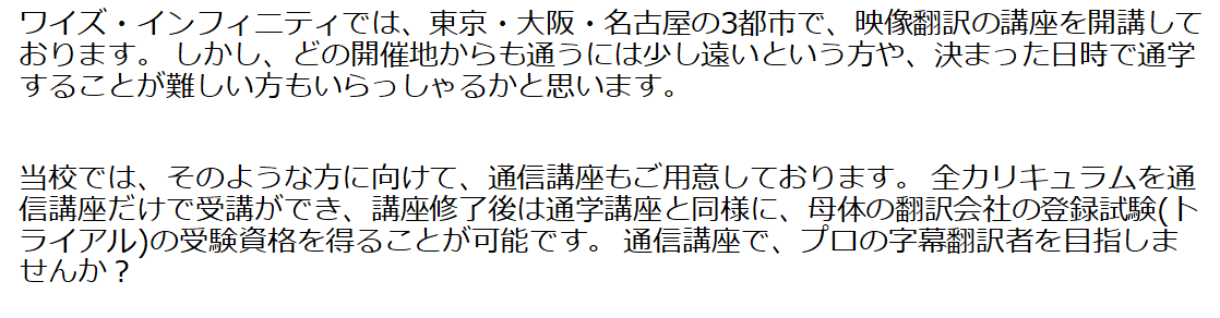 当サイトをご覧いただきありがとうございます。当校の映像翻訳講座に関するお問い合わせ、資料のご請求は下記のメールフォームより受け付けております。お気軽にお問い合わせください。
