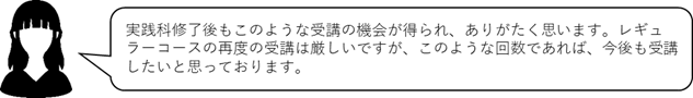 (ワイズスタッフ) 今回は初めて、録画受講の方がいらっしゃるクラスでしたが、緊張感をもって課題に取り組めたとおっしゃっていただき、嬉しく思います。